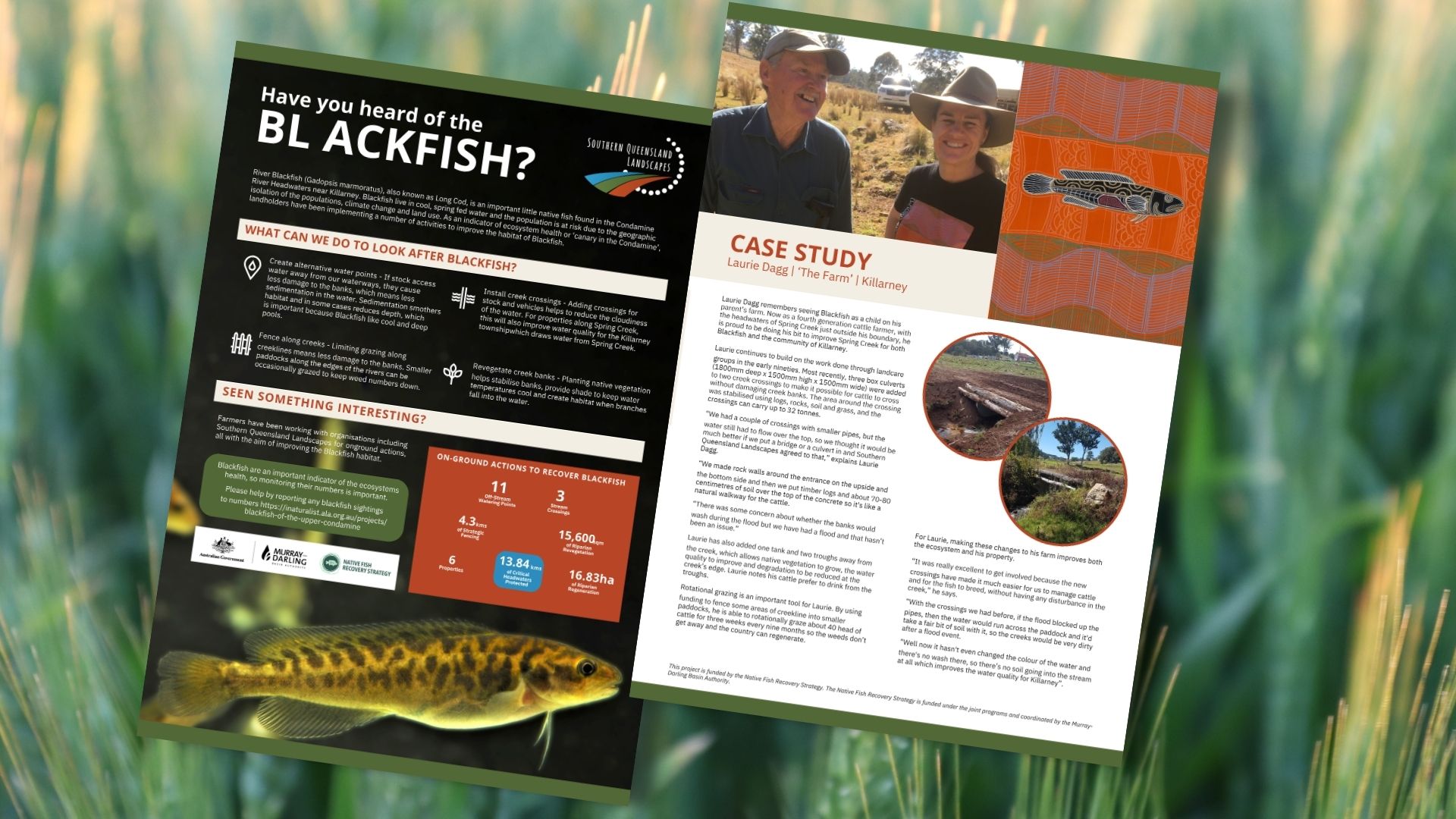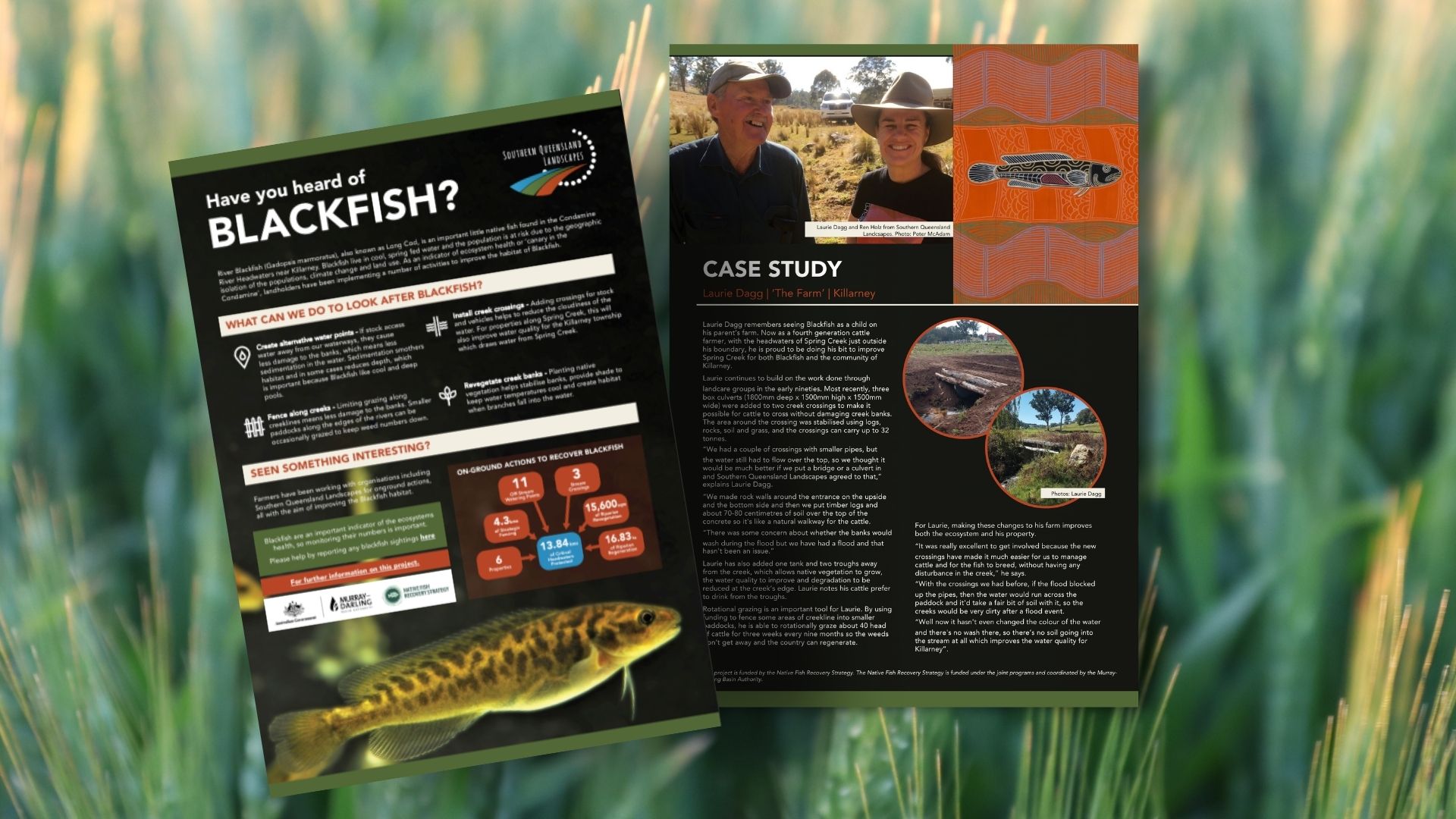Southern Queensland Landscapes (SQL) needed to condense a comprehensive 27-page report on the Blackfish Recovery Strategy in the Murray Darling Basin into a concise, engaging, and accessible format. The goal was to raise public awareness about river health, advocate for ongoing funding, and inspire action among local landholders and community groups in the Killarney area. The materials also needed to highlight collaboration with key stakeholders to ensure relevance and impact.